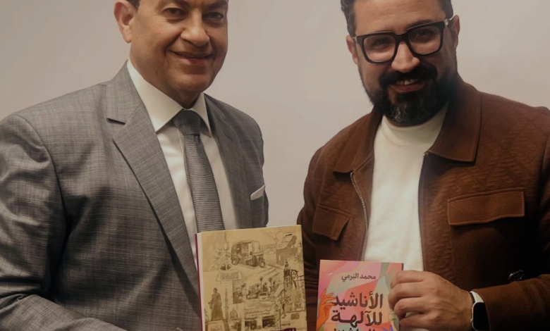 تبادلنا الزميل محمد البُرمي وأنا آخر كتابين لنا، فأهداني روايته الحاملة عنوانا لافتًا ” الأناشيد للآلهة والنياشين للحمقى” واهديته حبّي لمصر مصاغًا بنصٍ في كتابٍ جماعي شاركت بالإشراف عليه بعنوان ” الرسائل المصريّة” .